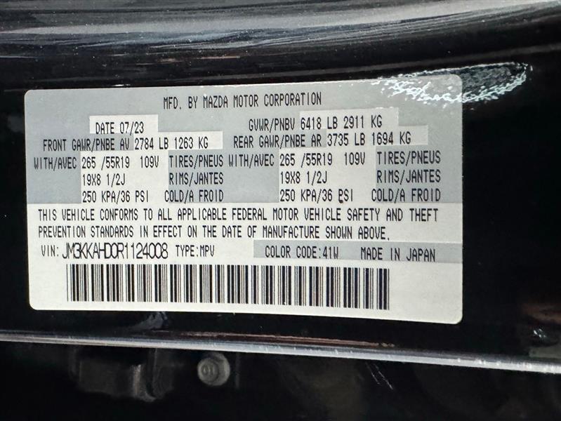 2024 Mazda CX-90 3.3 Turbo Select with third-row seating and leatherette interior in Jet Black. This AWD three-row SUV pairs a potent 3.3-liter turbocharged inline-6 with an 8-speed automatic transmission to deliver strong, composed performance and confident all-weather capability. The cabin offers seating for seven, premium synthetic leather surfaces, a modern infotainment suite with Apple CarPlay/Android Auto, heated front seats, multiple USB ports, and thoughtful cargo solutions for family trips or weekend gear. Safety features include adaptive cruise control, lane monitoring, rear backup camera, electronic stability control, and a comprehensive airbag package, while convenience items like a power liftgate, wireless charging pad, and dual-zone climate control make daily life easier. With clean styling, good tires, and recent inspection, this CX-90 is a well-rounded choice for buyers seeking comfort, tech, and performance in a family-focused SUV.