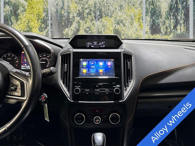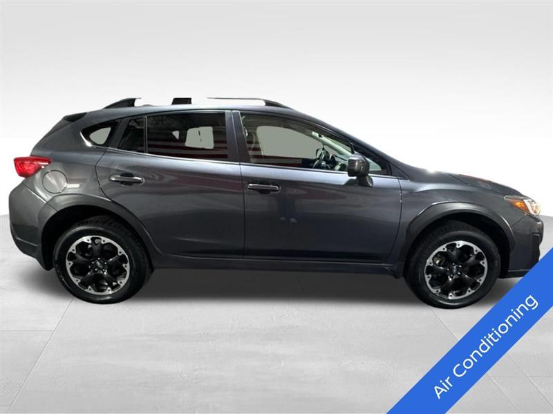 2021 Subaru Crosstrek Premium Gray exterior with a sporty Black interior trimmed in orange stitching is a versatile, AWD compact SUV powered by a 2.0L DOHC engine paired with Subarus Lineartronic CVT. This low-mileage example (28,507 miles) includes desirable features like heated front seats, Apple CarPlay/Android Auto via Subaru STARLINK, a rear backup camera, remote start, 17" alloy wheels, roof rails, and multiple safety systems including Subarus EyeSight suite and blind-spot detection. Well-equipped for daily driving and light adventures, it offers a comfortable cabin, good fuel economy, and a reputation for reliability.